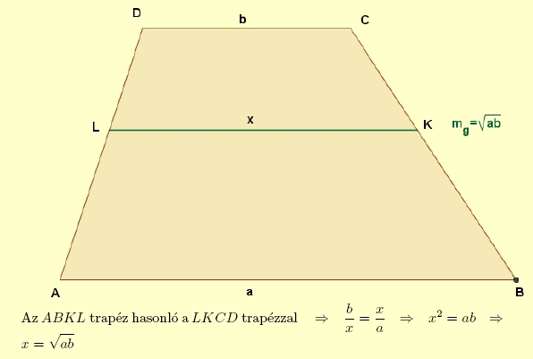 - A mértani közép két egymással hasonló trapézra osztja az eredeti trapézt