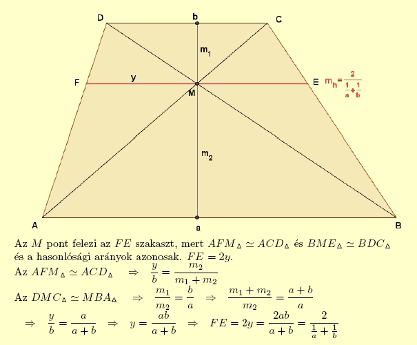 - A harmónikus közép az átlók metszéspontján halad át