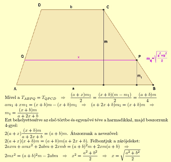 - A négyzetes közép két azonos területű trapézra osztja az eredeti trapézt