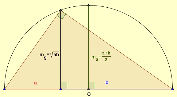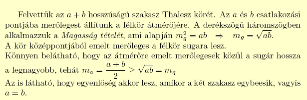 A számtani és mértani közepek közötti egyenlőtlenség bizonyítása geometriai úton: